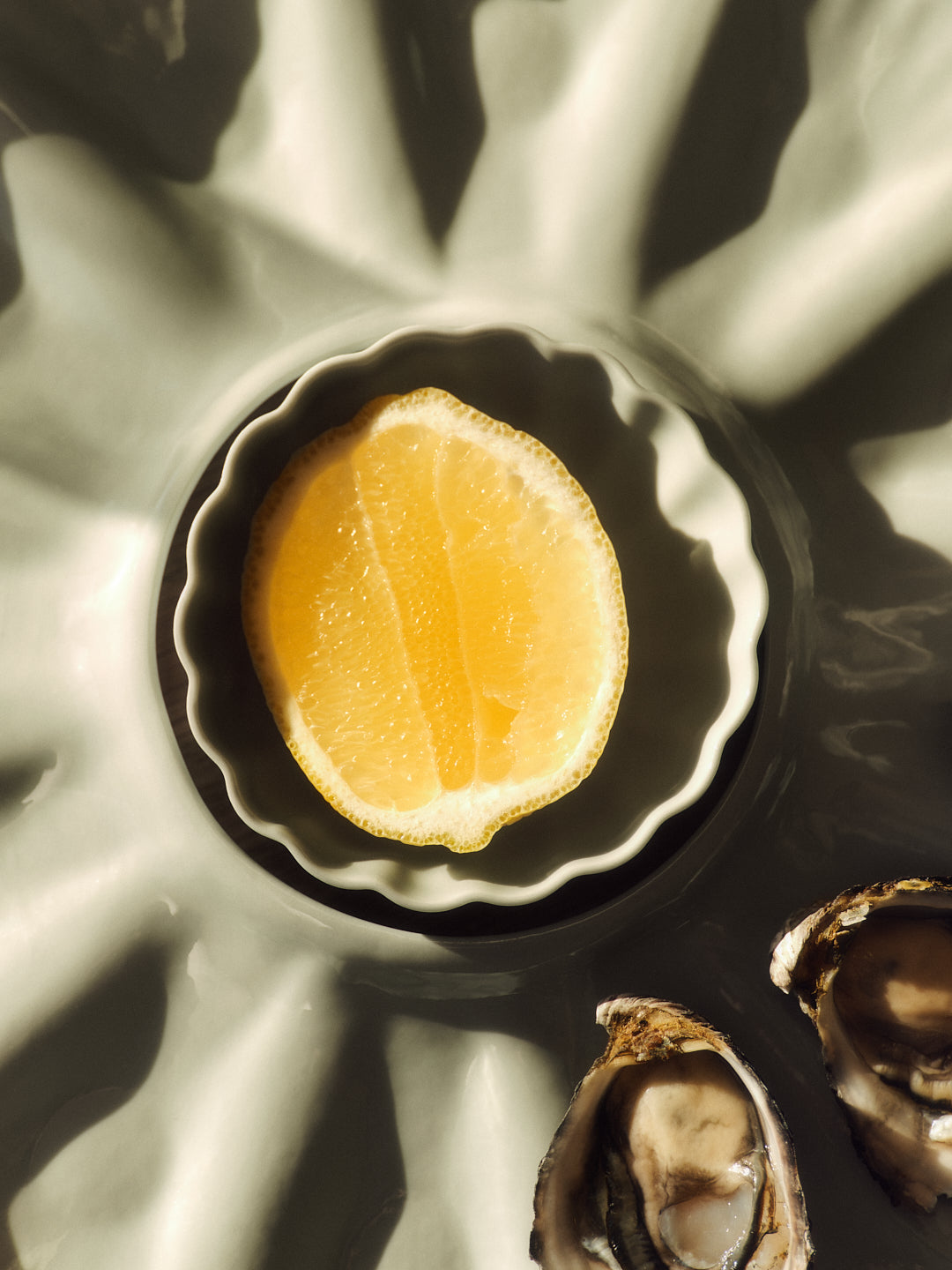 The Mother of Pearl Oyster Plates are designed to easily and beautifully showcase oysters (and more!).